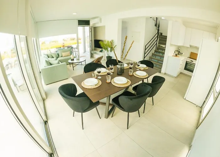 تقع على بعد 25 دقائق سيراً من شاطئ كالاميس في مدينة بروتاراس، Gold Emerging Villas 3 توفر إقامة مع المطبخ. التلفزيون مع قنوات فضائية ونظام التحكم المناخي ومنطقة جلوس موفرة في غرف هذه الملكية .